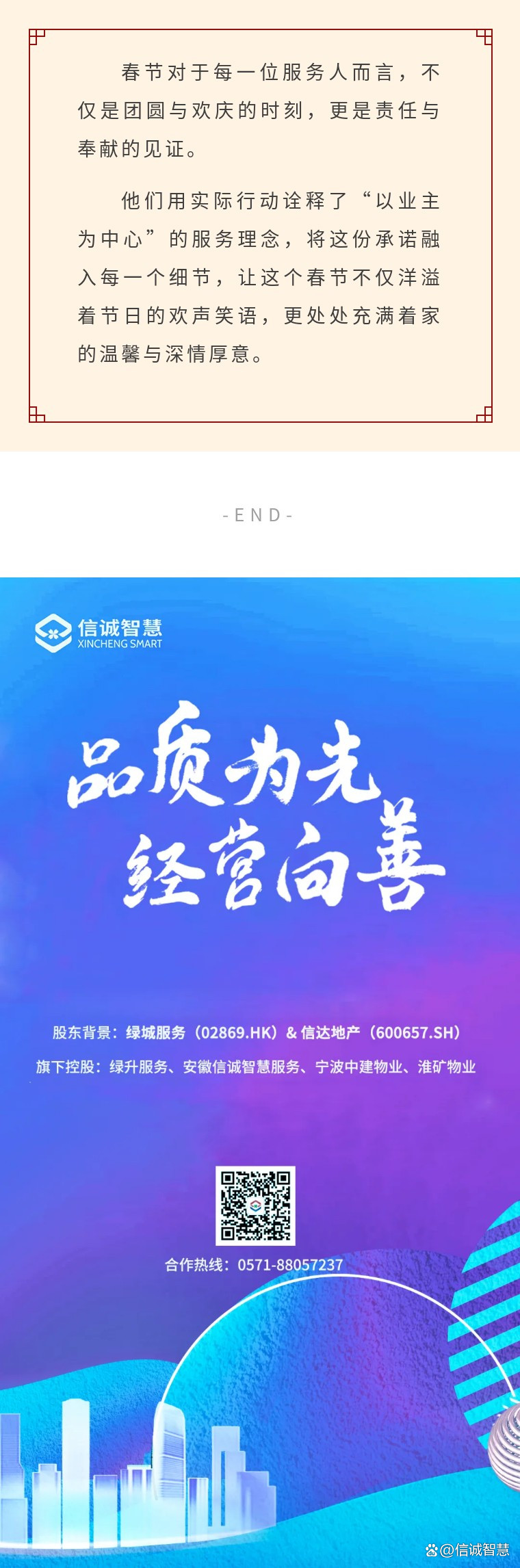 信诚智慧各服务中心在春节期间一如既往坚守岗位,用踏踏实实的工作热情悉心守护万家灯火;以丰富多彩的年味活动,让邻里们齐聚一堂,共赴这场温暖的新春之约。